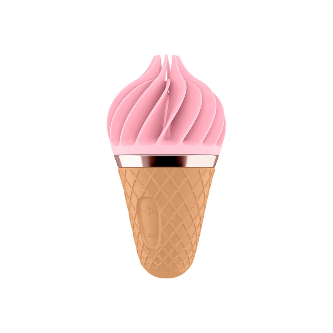 Estimulador de clitoris en forma de helado en silicona quirurgica, su textura ayuda a obtener multiorgasmos con 10 tipos de vibracion.