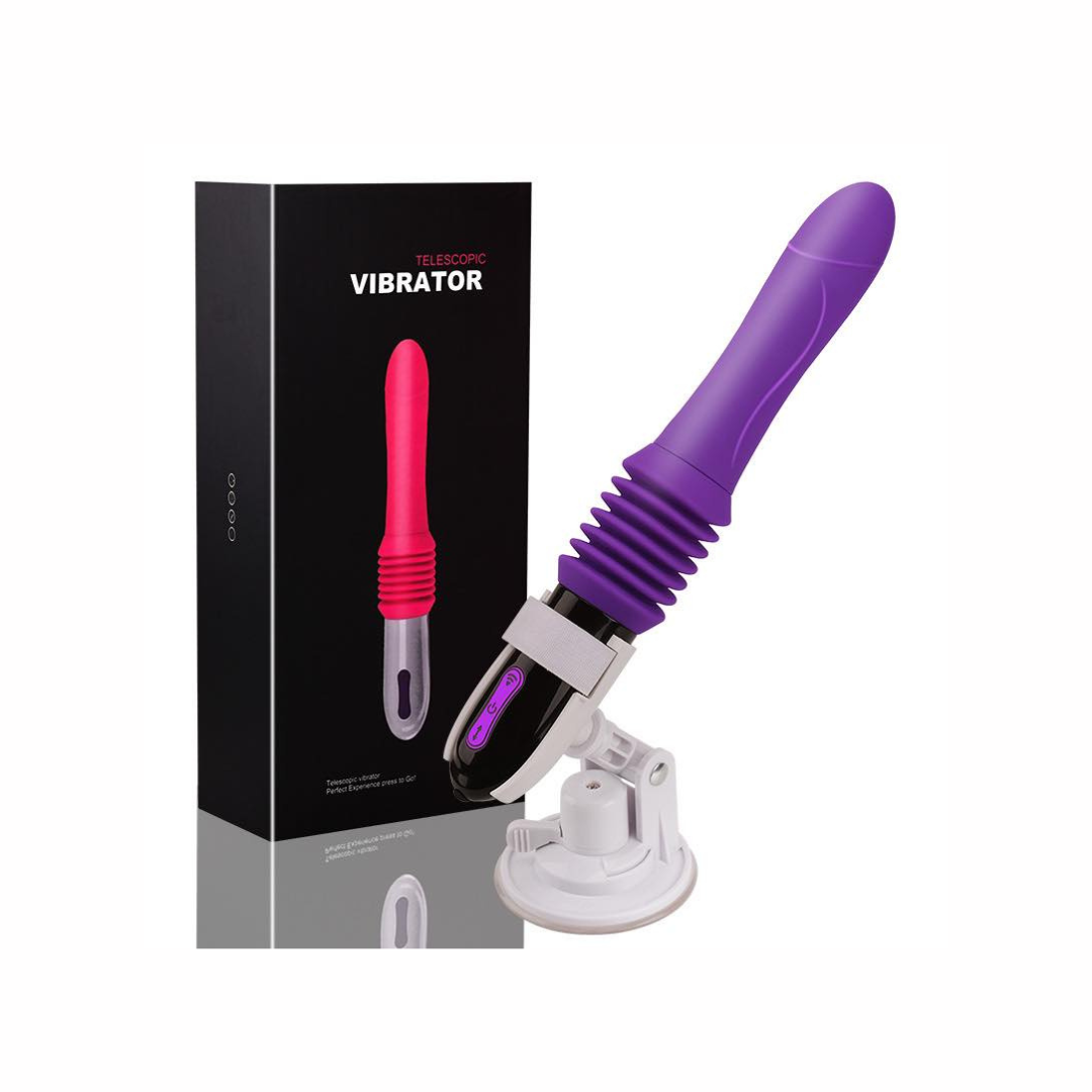 Vibrador imitacion de machine con soporte, push en diferentes intensidades, en silicona suave.