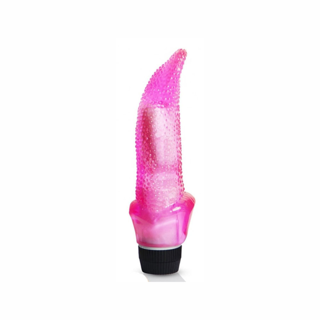 Vibrador con silicona en forma de lengua texturizado, funciona con pilas.